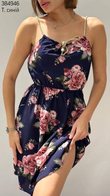 ✨ Літня сукня з квітковим принтом на бретелях ✨ 🌸 Модель: 384946 🌸 Колір: оливковий або темно-синій 🌸 Матеріал: софт (поліестер) 🌸 Легка, ніжна, приємна до тіла тканина 🌸 Регульовані декоративні шнурки на бретелях 🌸 Еластична резинка на талії для комфортної посадки 🌸 Розмір: універсальний (на фото параметри моделі — 79/61/91 см, зріст 162 см) 🌸 Довжина виробу: 75 см 💐 Стильна, жіночна та зручна — ідеально для спекотних днів, відпочинку чи прогулянок містом. 📦 Стан: нова, з біркою.
