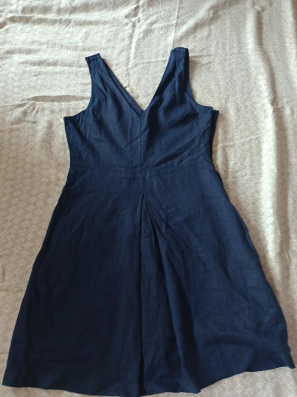 очень красивое летнее платье на подкладке. Элегантного темно синего цвета. 100% процентов хлопок. Можно носить с блузой, футболкой или без.Збоку застежка молния. Платье приталенное, спереди сборка.