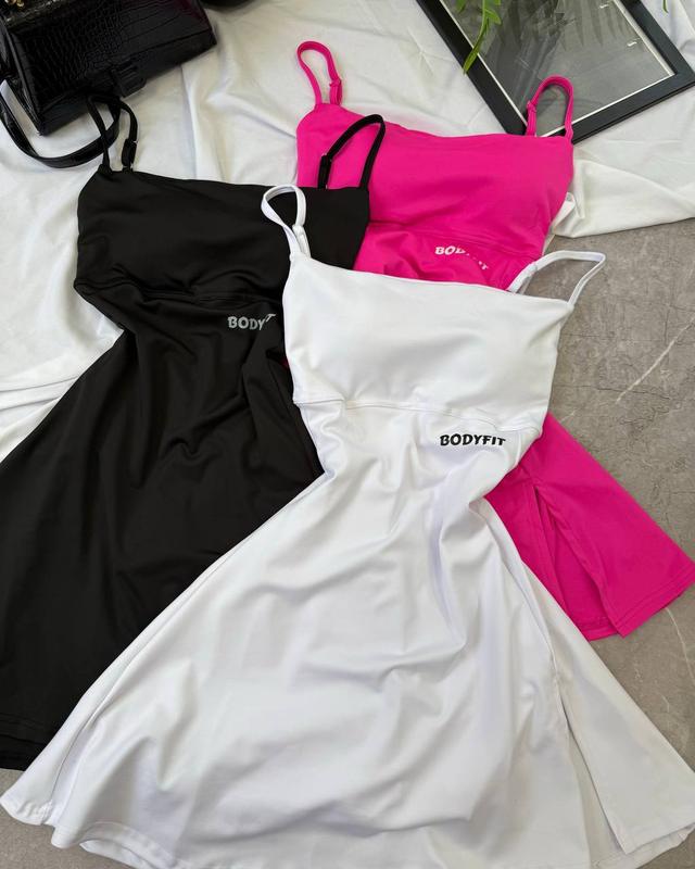 Фото РЕАЛ❤️ Спортивное платье - комбинезон Ткань: микродайвинг + чашки Размер: 42-44, 46-48 Цвета: черный, малина, белый Удобное платье с чашками для спорта или для прогулок! Снизу идет шортиками. Чашки в лифе сьемные. Ткань красиво тянется и садится по фигурке. Надпись - качественная накатка. 🛍Заказ накладным платьем за мин.передлатой 150-200грн, если хотите заказать шкафом только полная оплата за товар и + 100грн до стоимости(костия) на ФОП счет.