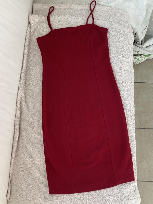 Мини платье бордового/красного цвета в размере М, на бретельках. В обтяжку. Прямой вырез, ткань тянется, приятная на ощупь. Длина 76-77