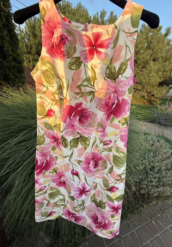 Шикарное цветочное платье-футляр. В идеальном состоянии, красиво тянется. Очень красивая, застегивается на молнию. Размер: S