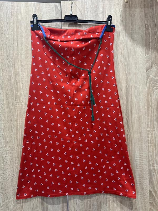 Коротка сукня з відкритими плечима і карманами , завʼязка на шнурок