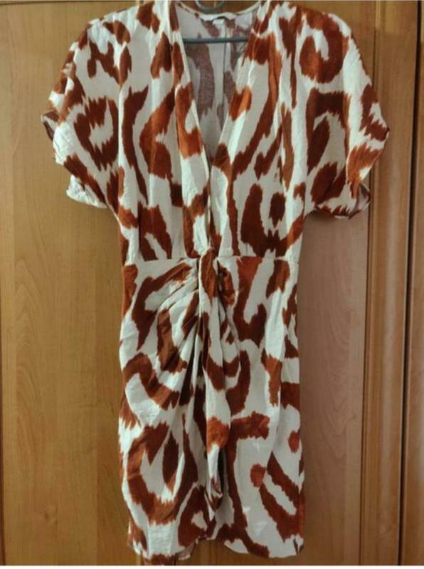 Платье h&m летнее Анималистичный принт С запахом спереди крючонок на 36 с хс вискоза плечи спущены под руками свободно, потому что вырез 32-39 талия (резиночка на спинке) 44-45 бедра ориентовно (запах) 88 длина