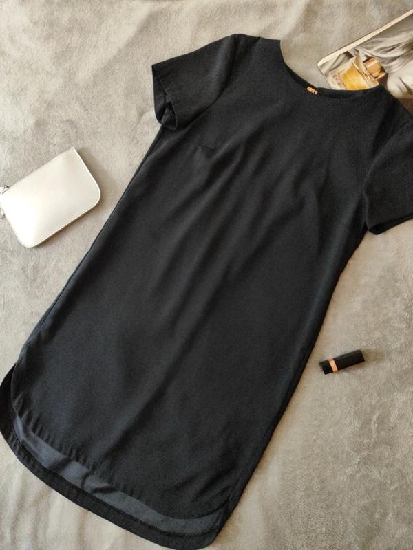 Интересное прямое платье темно-синего цвета, с застежкой на спинке и вырезом маленьким на спинке. Перед платья короче.Ткань не тонкая и не тянется. Платье в идеальном состоянии,только застежка потеряла первоначальный вид, при желании можно заменить. НОГ 48см Длина переда 86см Длина спинки 94,5см Заходите на мой профиль, возможно вас еще что-то заинтересует. При заказе обратите внимание на вещи-подарки.(можно несколько)
