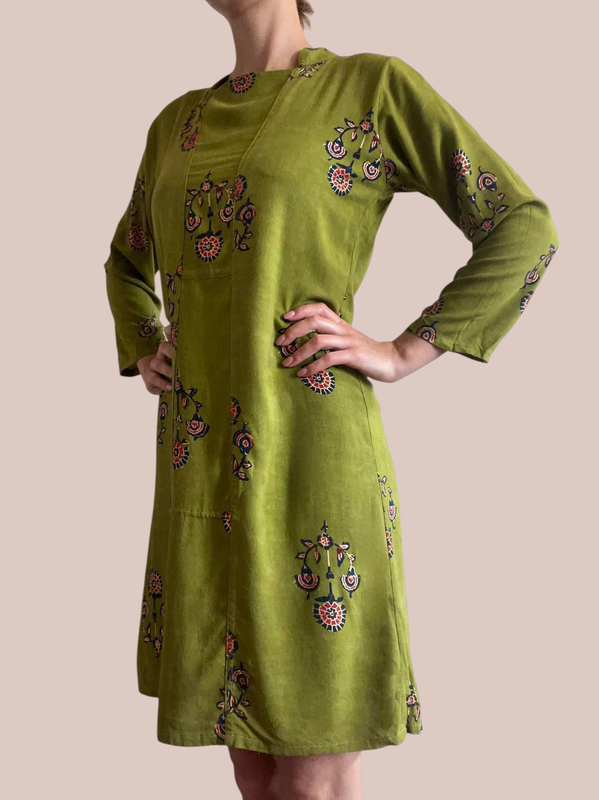 Літня сукня трапеція для дому чи прогулянок, пошита з легкої тканин штапелю, крій такий, що гарно лягає по фігурці.