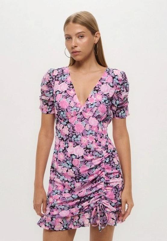 Коротка стильна сукня Шифон на підкладці, довжину можна регулювати затягуючи завʼязки, збоку потаємна змійка Двичайна довжина 84 см