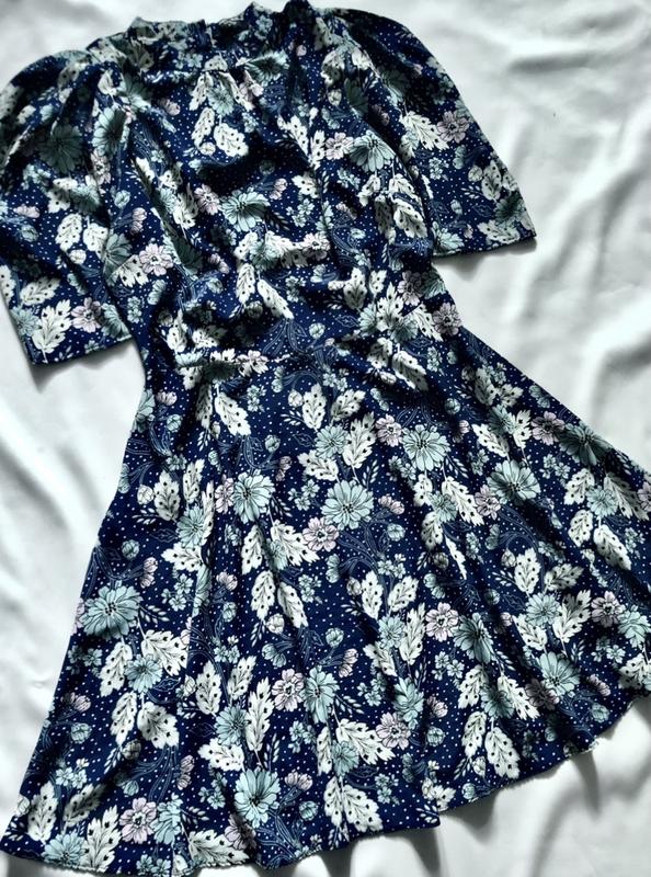 Сукня з тонкої приємної тканини ( поліестер), в ідеальному стані, без дефектів. Довжина 90 см, Довжина до талії 42 см, Плечі 30 см, Ног. 50 см, Нот. 37 см і трохи тягнеться ( ззаду гумка), Стегна вільні.