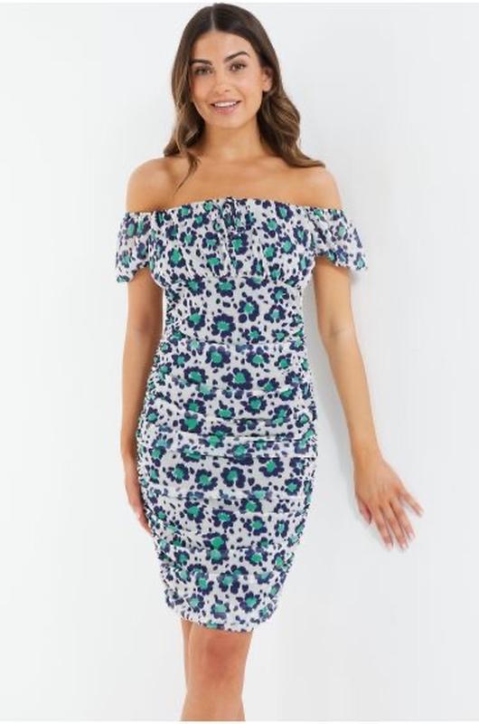 новое платье по плечам леопард из микросетки quiz м пог 43-51 поб 39-49 длина 100 #•1515