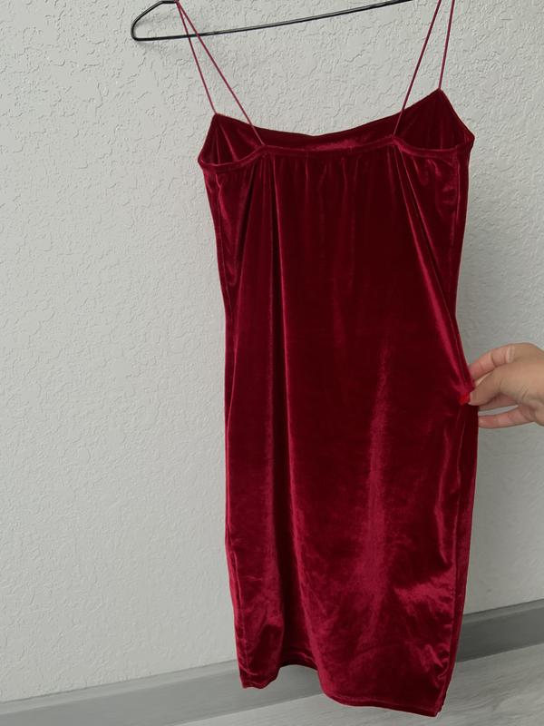 Сукня на брительках,велюрова червоно бордовий колір сидить гарно по талії