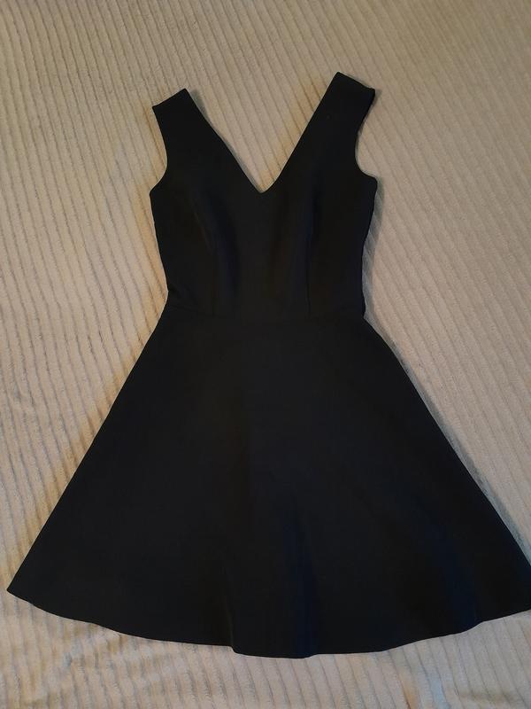 Елегантна сукня з V-подібним вирізом та відкритою спинкою. Має широкі бретелі, що надійно тримають форму, та ефектну вставку на спині із застібкою-гаком. Верх щільно прилягає до тіла, підкреслюючи талію, а розкльошена спідниця додає легкості та жіночності образу. Ідеально підходить для вечірки, побачення чи урочистої події.
