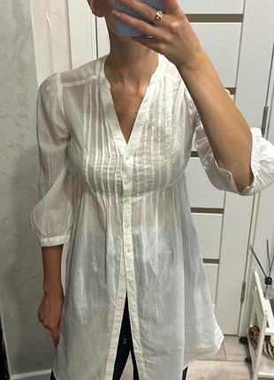 Невагома сорочка сукня. Напівпрозора. Рукав 3/4 фіксується на ґудзик. Розмір хс-с. На фото вдягнена на 170 см. 100% бавовна