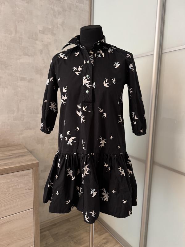 Сукня міні з котону Принт ластівки, застібка гудзики до талії