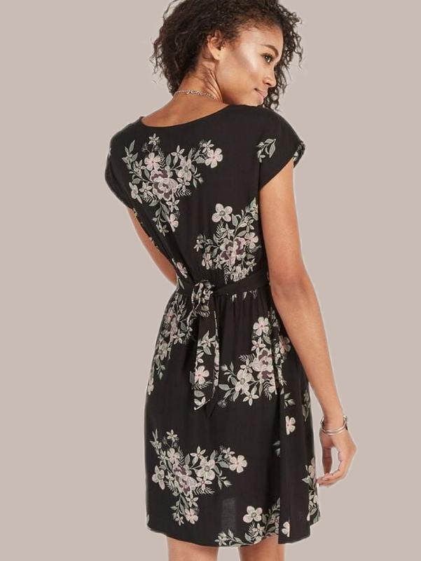 Стильное, маленькое, черное платье от британского бренда APRICOT с изысканным цветочным принтом оливково- сиреневого цвета р. 44, круглый вырез горловины, цельновыкроенные короткие рукава, по спинке в области талии вшита эластичная резинка, есть поясок-завязки, замеры: длина плечо+рукава- 14 см., ПОГ-43 см., ПОТ-32 до 40 см., ПОС-47 см., длина-82 см., б/в отличном состоянии, цена- 250 грн.