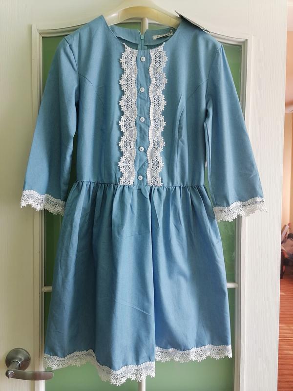Голубое платье под джинс, тоненькое, с кружевом. НОВАЯ, с биркой. 44-46 размер. ОГ-92 см. ОТ до 78 см. Длина - 90 см.
