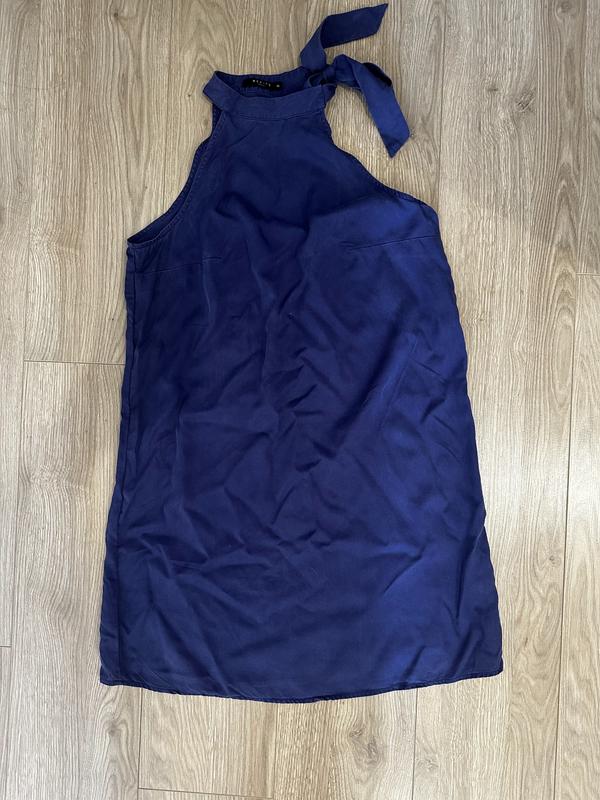 Міні сукня пильно фіолетового кольору з коміром халтер і зав’язкою на шиї