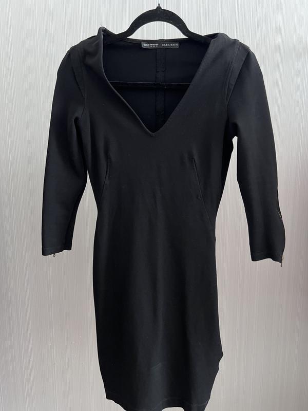 Чорна облягаюча сукня Zara. На рукавах є змійки
