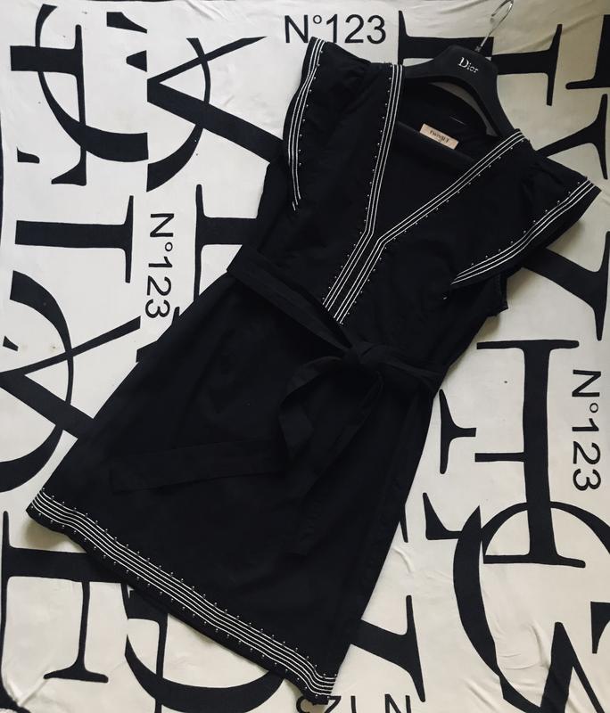 Секси платье от мирового лидера моды в линейке ПРЕМИУМ КЛАССА 🫶 Модель подана в чорном цвете с элементами отделки (нашивка)❤️ Небольшая стрейч фактура,можно носить как под пояс так и самостоятельно ✅ Глубокий V образный вырез Сбоку застёжка молния (потайная) Длина изделия по центру спинки 86см ПОТ 38,,,,,,40см ПОГ 47см