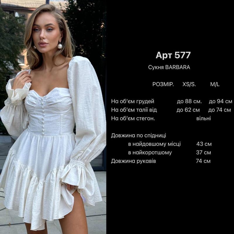 Арт 577 Сукня BARBARA Тендітна сукня з мʼяким ліфом, декорована ґудзиками обтягнутими в тканину, з обʼємними рукавами та пишною не симетричною спідницею. Застібається по спинці потайною змійкою. Розмір:XS/S, M/L Тканина : кольорові - ТЕНСЕЛ однотон - льон візкозний Підкладка -бавовна ⚠️Ціна: 3400