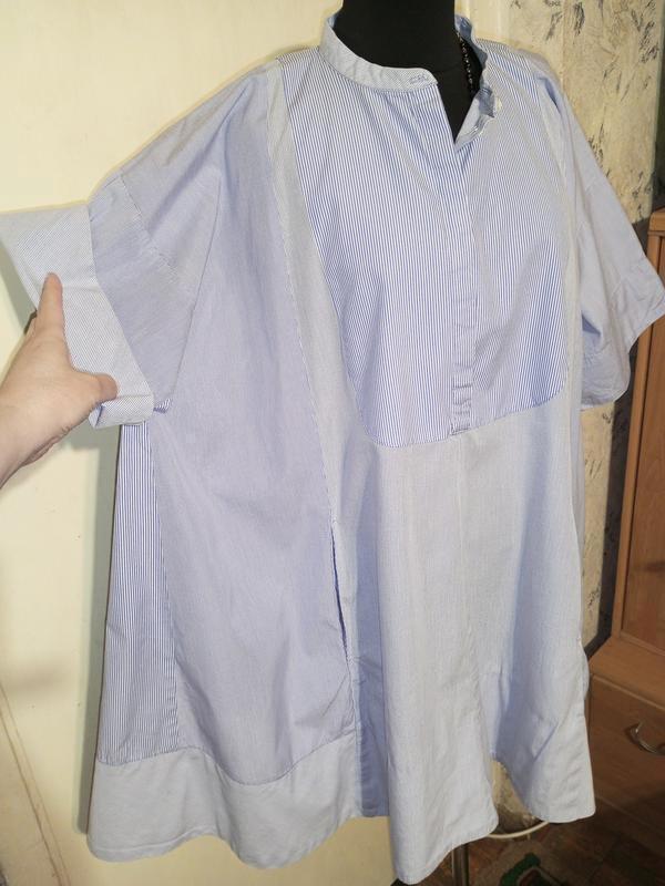 Шикарный, натуральный - 100% хлопок, удлиненный, комбинированный, бохо блузка-туника-разлитайка или короткое платье, с карманами по центру, ворот - стойка на пуговицах, батал или оверсайз, Boomerang Bb, Португалия. Цвет - голубой и белый, в мелкую клетку и полоску. Размера отсутствует, подойдет от М до 50-го, но ориентируйтесь по измерениям: ПОГ (от подмышки до подмышки) - 65см +, ПОТ -85см; ПОС - умовно по низу кишень - 100см; ПО канту - 120см (общадь 2 метра 40см); длина от плеча - 81см, длина рукава - 39см, подворачивается на манжет. Стильная, качественная, интересная вещь. Ди.ин.мои объявления - есть аналогичные блузки-майки, платья, штаны и 90% одежды большого размера. Подписывайтесь на мою страницу - каждый день обновления одеждой больших размеров и не только. просите, сложи дополнительные замеры и фото. Возвращение нет объявления платные. Покупая несколько товаров-вы экономите на пересылке, лоты комбинируются. Прохание: перед покупкой ознакомиться с рубрикой "ПРО МЕНЕ" Состав: 100% коттон-бабовна Доставка: Перешлю в ин.места-за Ваш счет - при полной оплате на карточку
