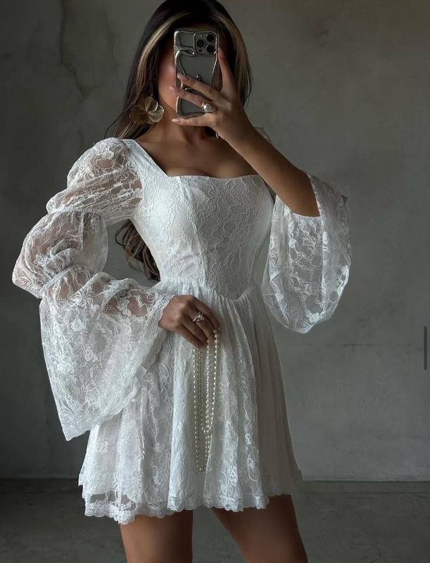 Врт 1492-1148 Сукня 🔘Розміри - 42-44, 46-48 🔘Кольори - молочний 🔘Тканина - гіпюр + підкладка Вишукана мереживна сукня з пишною спідницею та обʼємними рукавами. Ідеально підійде до будь-яких свят. Має підклад та не світиться. Приємна легка тканина. Збоку йде потайна змійка.