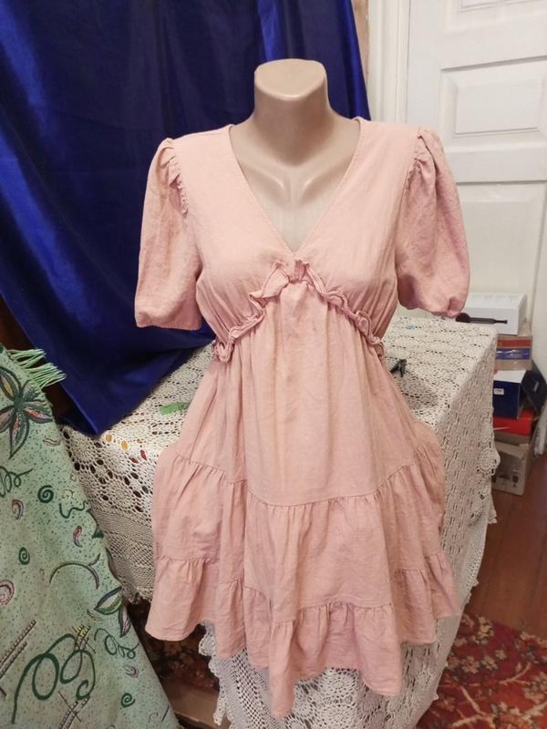 очень красивое платье. Ткань приятная к телу и немного тянется. Размер хс, с, м. Есть маленькое пятнишко спереди, при году не заметно. опис состояние очень хорошее длина 86 ширина комди 48 ширина бедер 75