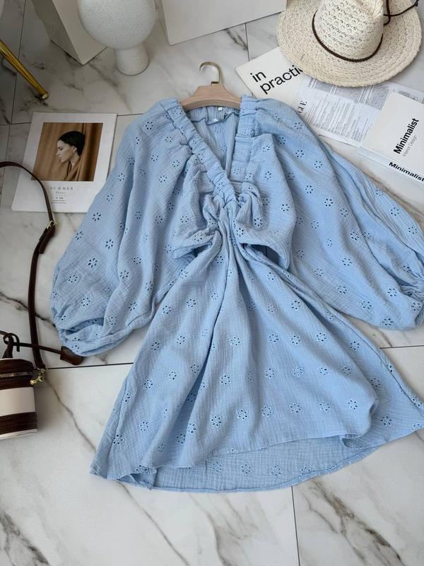 📝Арт: 4936-444 Платье из натуральной ткани Муслин ▫️Ткань: Из натурального Муслина прошва ▫️Размер: 42-46 оверсайз ▫️Цвет: молочный, голубой и малиновый. Отличное качество ткани и пошива. Воздушное и легкое платье