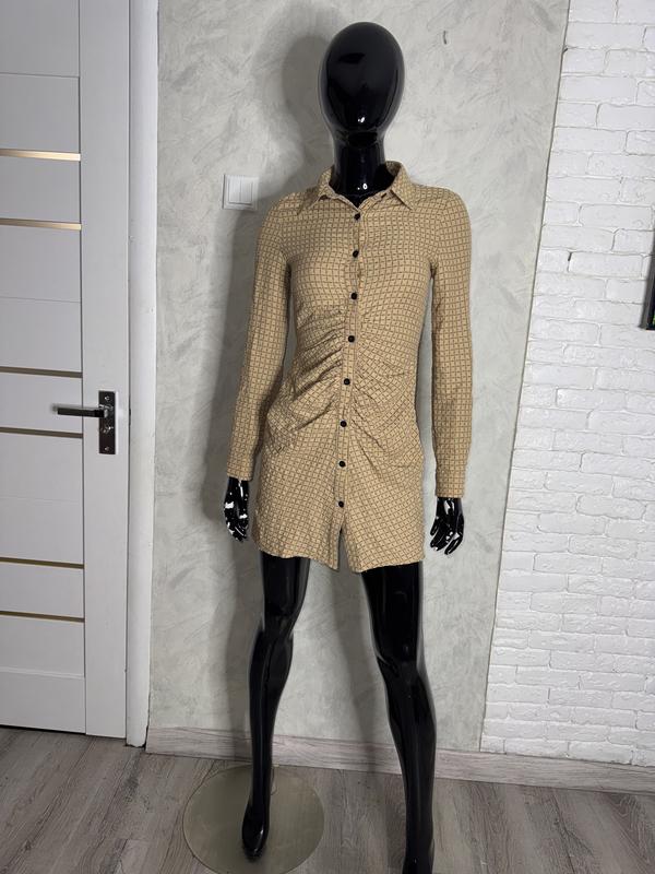 Коротка сукня сорочка плаття у клітинку жатка PrettyLittleThing, S. Довжина 84, ПОг 47-50, ПОБ 48-50