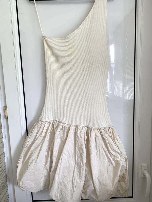 Платье на одно плечо , юбка баллон, состояние отличное,цвет молочный, Айвори , подойдет на m-l , верх тянется.