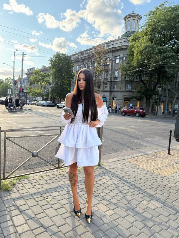 🤍 Сукня-трансформер з рукавами Арт. 7093.1 — білий Арт. 7093.2 — чорний ⸻ 💫 Розміри: 🔹 42–46: ОГ та ОС до 104 см, ОС безрозмірна 🔹 48–58: ОГ та ОС до 140 см, ОС безрозмірна 📏 Довжина: • 79 см загальна (44 см від талії) — менший розмір • 89 см загальна (49 см від талії) — більший розмір ⸻ 🌬 Матеріал: креп жатка — дихаючий, легкий, приємний до тіла 🎀 Низ ущільнений Регаліном — зберігає форму спідниці 🧵 Прошита м’якими резинками — гарно облягає фігуру 👗 Рукави знімаються — можна носити в двох варіантах: з відкритими плечима або без рукавів ⸻ ✨ Ця сукня — ідеальний вибір для літнього вечора, побачення чи фотосесії. Актуальний фасон, комфортна посадка та змінний формат — виглядай стильно та легко в одному образі! Даний товар надсилаємо новою та укр поштою) вибачте за незручності)
