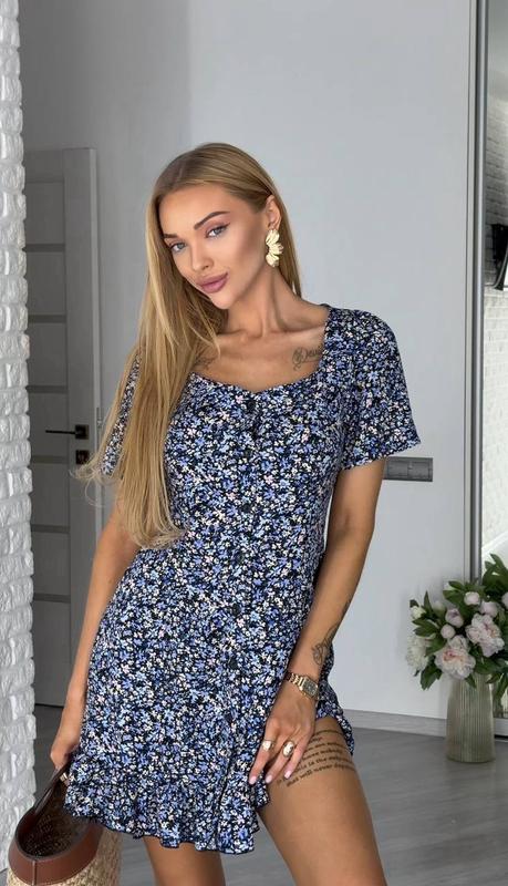 Платье из натуральной ткани в еще одном самом эффектном цвете Длина мини, цветочный принт, романтический рюш Мы уверены, что в любом цвете ты будешь выглядеть непревзойденно ател) Мод.071 Цвет: синий, голубой, желтый, черный Материал: штапель (100% вискоза) Размер: 42-44, 44-46 Отличное качество ткани и пошива
