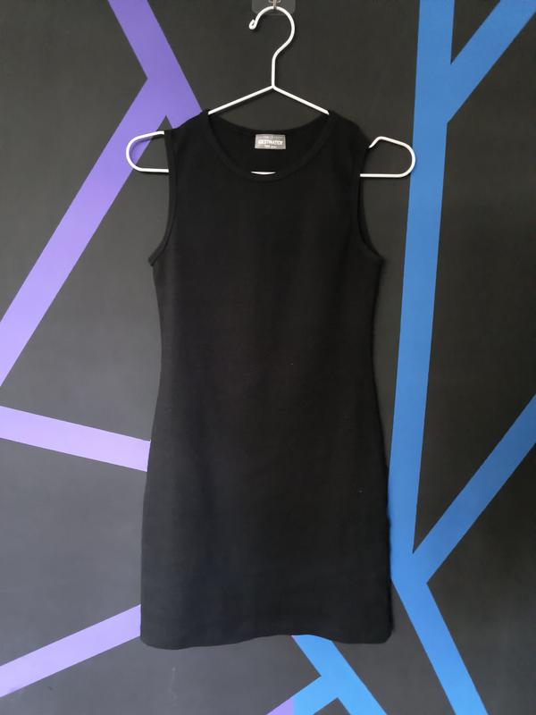 Черное обтягивающее платье без рукавов, в рубчик. Стильное черное платье - классика, которая всегда в моде! Облегающий фасон, без рукавов, мягкий и приятный материал. На 164 см Состояние: отличный
