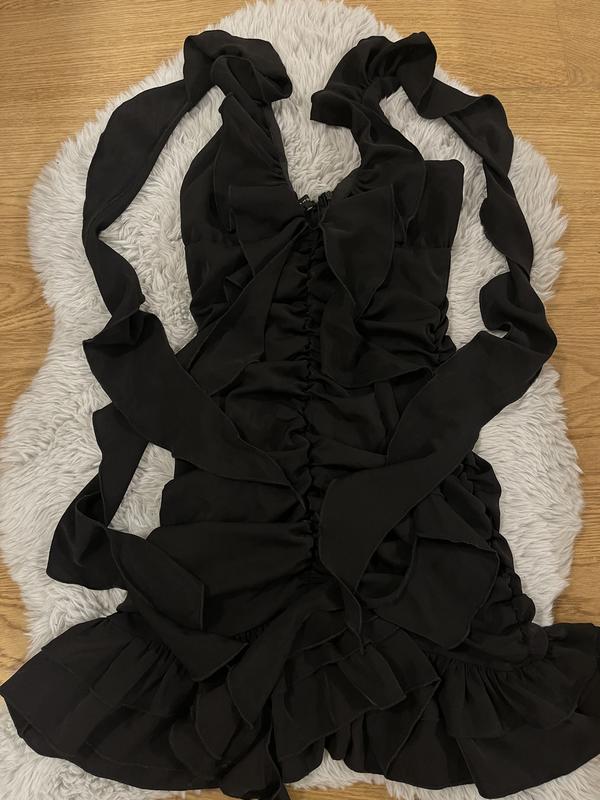 Чорна сукня, фірма MissDiamond, стан ідеальний, була одягнена один раз, без дефектів, з рюшками, розмір S, доставка по всій Україні