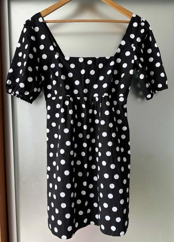 Стильное платье в горох прямого кроя. Очень лёгкий – материал: хлопок. Саме чудово в жарку погоду. Размер М - обхват груди 80 см + тянется (сзади резинка) - обхват талии 81 см - Длина по спине 80 см (если мерять само платье - то 65 см) Возможен торг