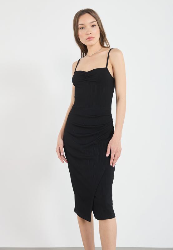 Розмір XS Напівобʼєм в грудях - 27 см (тягнеться) Довжина - 96 см (бретелі регулюються) Матеріал тканини : 96% поліестер, 4% еластан Інструкції з догляду : Не сушити в сушильній машині, прати в пральній машині при температурі 30°C, на делікатному режимі Зріст моделі : Зріст моделі становить 170 см, а її одяг — розмір S.