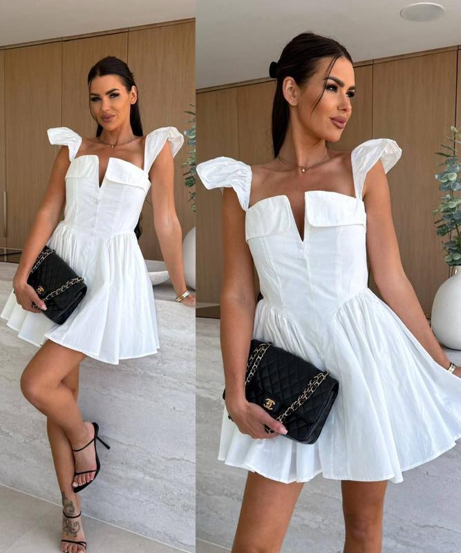❤️😘❤️ Сукня #0136 гол1462 Ткань: бенгалин Цвета: белый Размер: 42-44,46 -48 Цена: 890грн Платье - легкое, женственное, притуленный силуэт в верхней части и расширяется к низу создает эффект легкого пышности. Верх платья имеет открытую линию декольте с V - образным вырезом и декоративными клапанами на бюсте, бретели на резинке оформлены рюшами, что добавляет образу романтичности и нежности 🥰 Материал легкий, хорошо держит форму юбки. . Белый - создает образ свежести, легкости и летнего настроения😍
