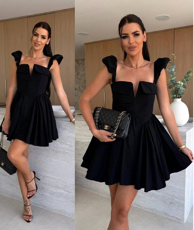❤️😘❤️ Сукня #0136 гол1462 Ткань: бенгалин Цвета: белый, черный Размер: 42-44,46 -48 Цена : 890 грн Платье - легкое, женственное, притуленный силуэт в верхней части и расширяется к низу создает эффект легкого пышности. Верх платья имеет открытую линию декольте с V - образным вырезом и декоративными клапанами на бюсте, бретели на резинке оформлены рюшами, что добавляет образу романтичности и нежности 🥰 Материал легкий, хорошо держит форму юбки. Черный - добавляет образу элегантности, сдержанной роскоши и вечерней изысканности.😎