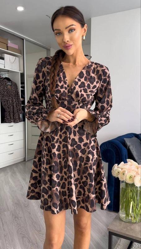 Леопардовое расклешенное платье с открытой спинкой, платье лео, платье леопард