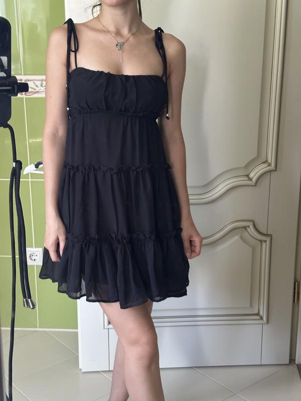 🤍 Чорне плаття з рюшками - довжина 60 см груди 28-30 с Одягнено на зріст 160 см, розмір хс ,можна і на ххс