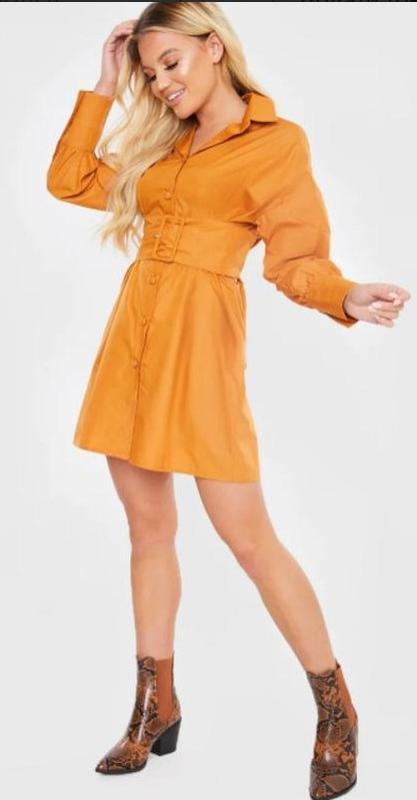 In the style. товар из англии. платье рубашка с поясом в мустардовом цвете.