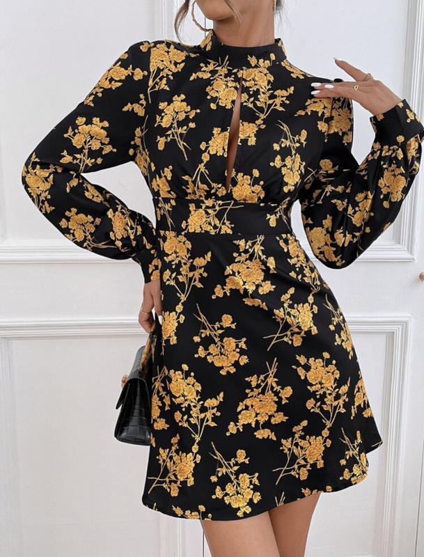 Стильна чорна сукня в квітковий принт з акцентом на талії
