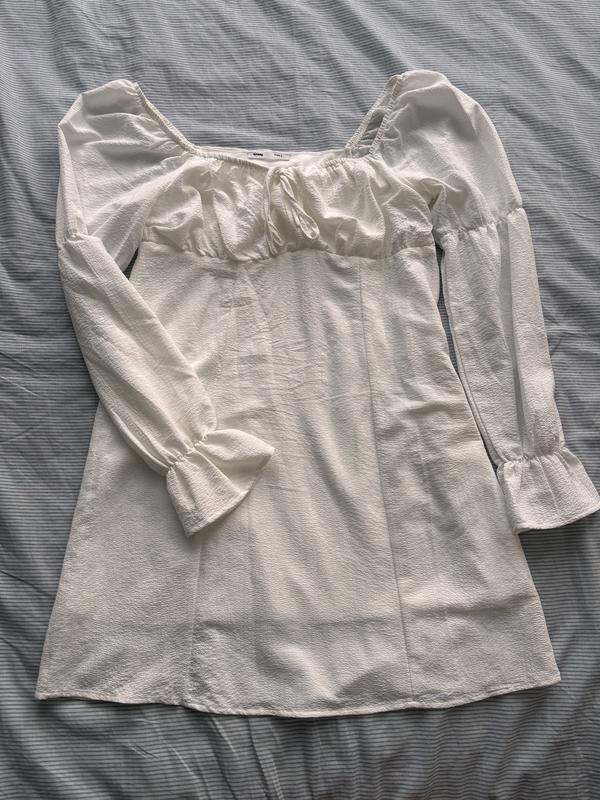 Дуже красива коротенька сукня з підкладкою, рукава можна спустити на плечі, тканина легка, але плотна