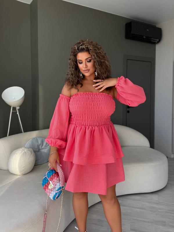 🤍 Платье-трансформер с рукавами ✨ Это платье - идеальный выбор для летнего вечера, свидания или фотосессии. Актуальный фасон, комфортная посадка и сменный формат – выглядывай стильно и легко в одном образе! ⸻ 💫 Размеры: 🔹 42–46: ОГ и ОБ до 104 см, ОБ безразмерная 🔹 48-58: ОГ и ОБ до 140 см, ОБ безразмерная 📏 Длина: • 79 см общая (44 см от талии) - меньший размер • 89 см общая (49 см от талии) - больший размер ⸻ 🌬 Материал: муслин - дышащий, легкий, приятный к телу 🎀 Низ уплотненный Регалином - сохраняет форму юбки 🧵 Прошита мягкими резинками - красиво облегает фигуру 👗 Рукава снимаются – можно носить в двух вариантах: с открытыми плечами или без рукавов ⸻ Модель 7093.16 СС