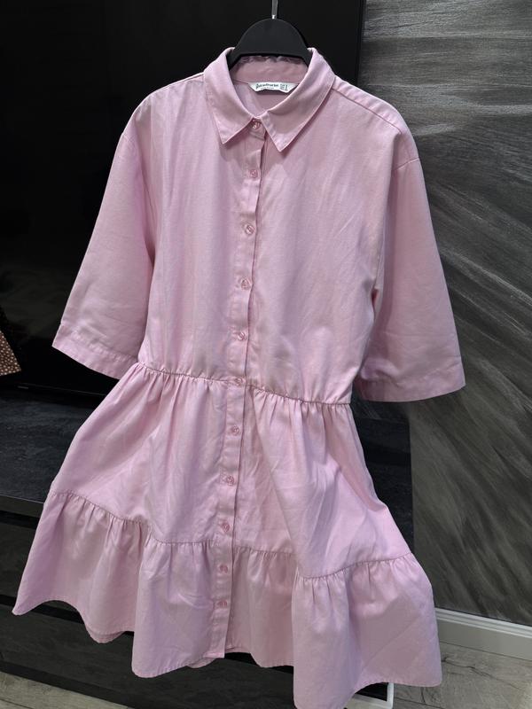 Стан ідеальний!Розмір С!Тканина натуральна!Сідає сукня супер!Довжина з коміром 90 см, довжина рукава 34.5 см, плечі 44 см, талія 33 см по резинці у спокої, стегна 60 см