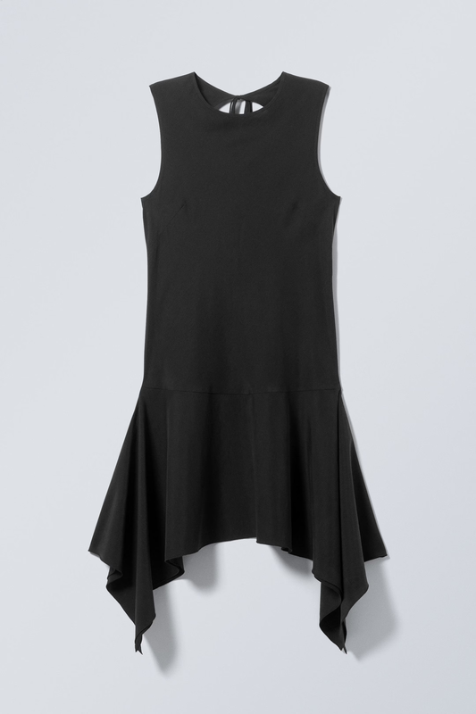 Коротке міні-плаття прямого крою, виготовлене з легкої та повітряної суміші ліоцелю та поліестеру. Воно має асиметричну спідницю, подвійні зав'язки ззаду, що утворюють два відкритих кола, та акуратні краї з бейлоком. Сукня абсолютно нова, не вдягалася, бо не підійшов розмір. Ціна обговорюється, можу зробити знижку.