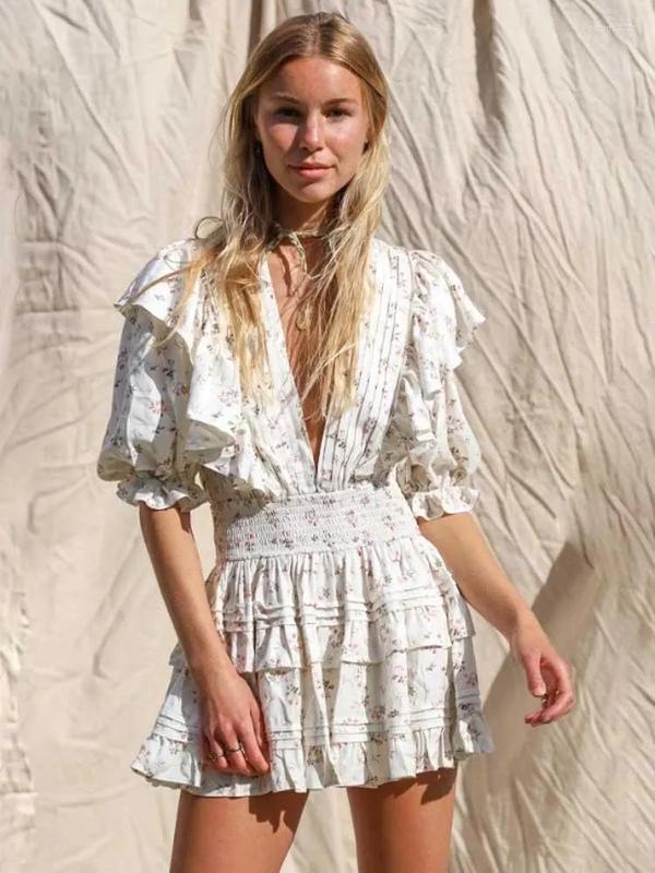 Легка літня сукня в бохо-стилі з вирізом, пишними рукавами та квітковим принтом, ідеальна для прогулянок, відпочинку чи фотосесій. Підкреслює фігуру завдяки еластичній талії, одягалася лише раз - стан відмінний. розмір S
