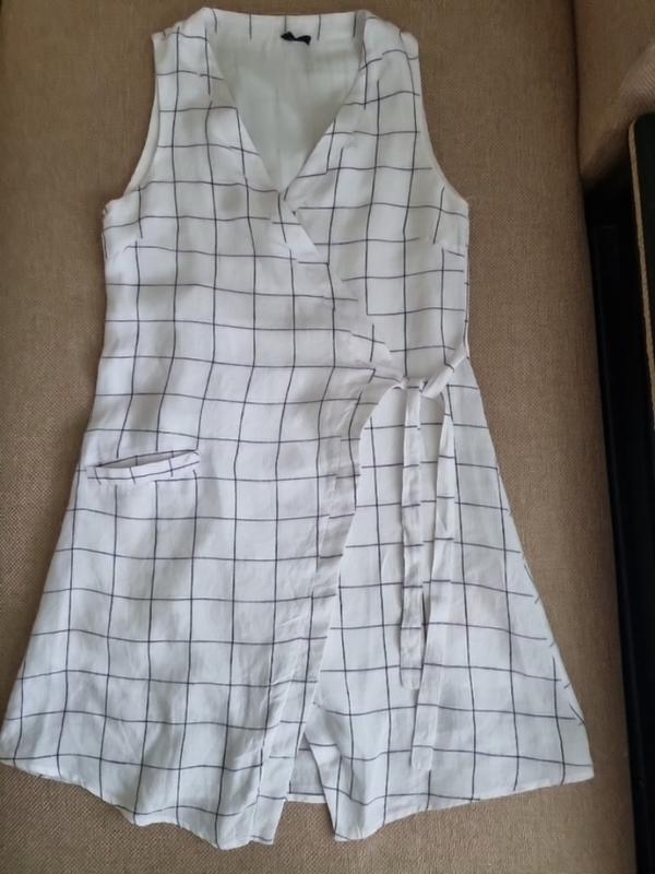 Льняное платье в клетку на запах с асимметричным низом david jones