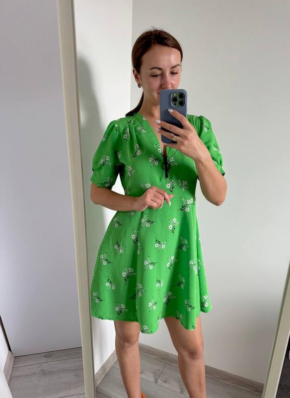 Зеленое летнее платье в цветочный принт, размер Л-М Одягнено на С