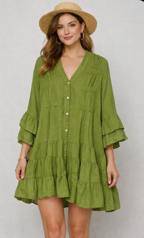 --- 🌿 Платье из 100% итальянского льна 🌿 Лёгкое, воздушное, с выразительным кроем и рюшами — создано для лета и свободы движений. ⠀ ✨ Натуральная ткань — дышит и заботится о коже ✨ Комфортный свободный силуэт — скрывает и подчёркивает фигуру ✨ Эффектные декоративные складки и воланы на рукавах и подоле ⠀ 💚 Цвет: свежий оливково-зелёный 📏 Размер: универсальный (подойдёт от 44 до 52 🇮🇹 Лён из Италии ⠀ Идеально для отдыха, прогулок, работы и путешествий.Пог 60см . Бедра свободно Длина 90/100 ---