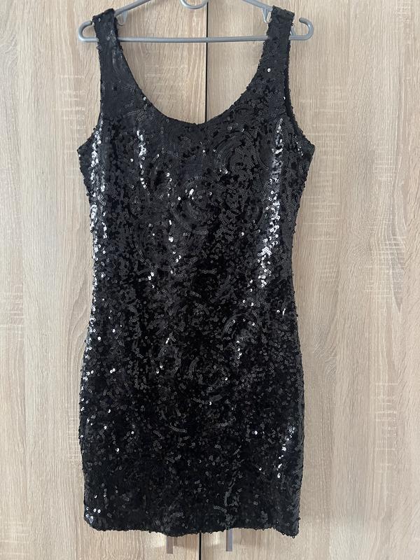 Красива сукня з пайетками, які пришити узором. З відкритою спинкою.