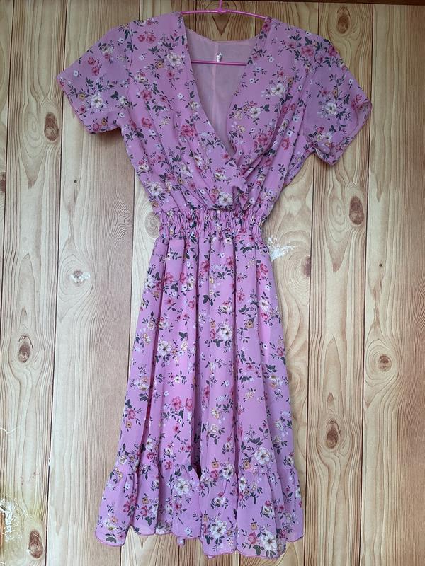 Жіноча сукня рожева на запах, комфортна літня легенька , прінт квіточки, заміри скину в особисті повідомлення, розмір s-xs